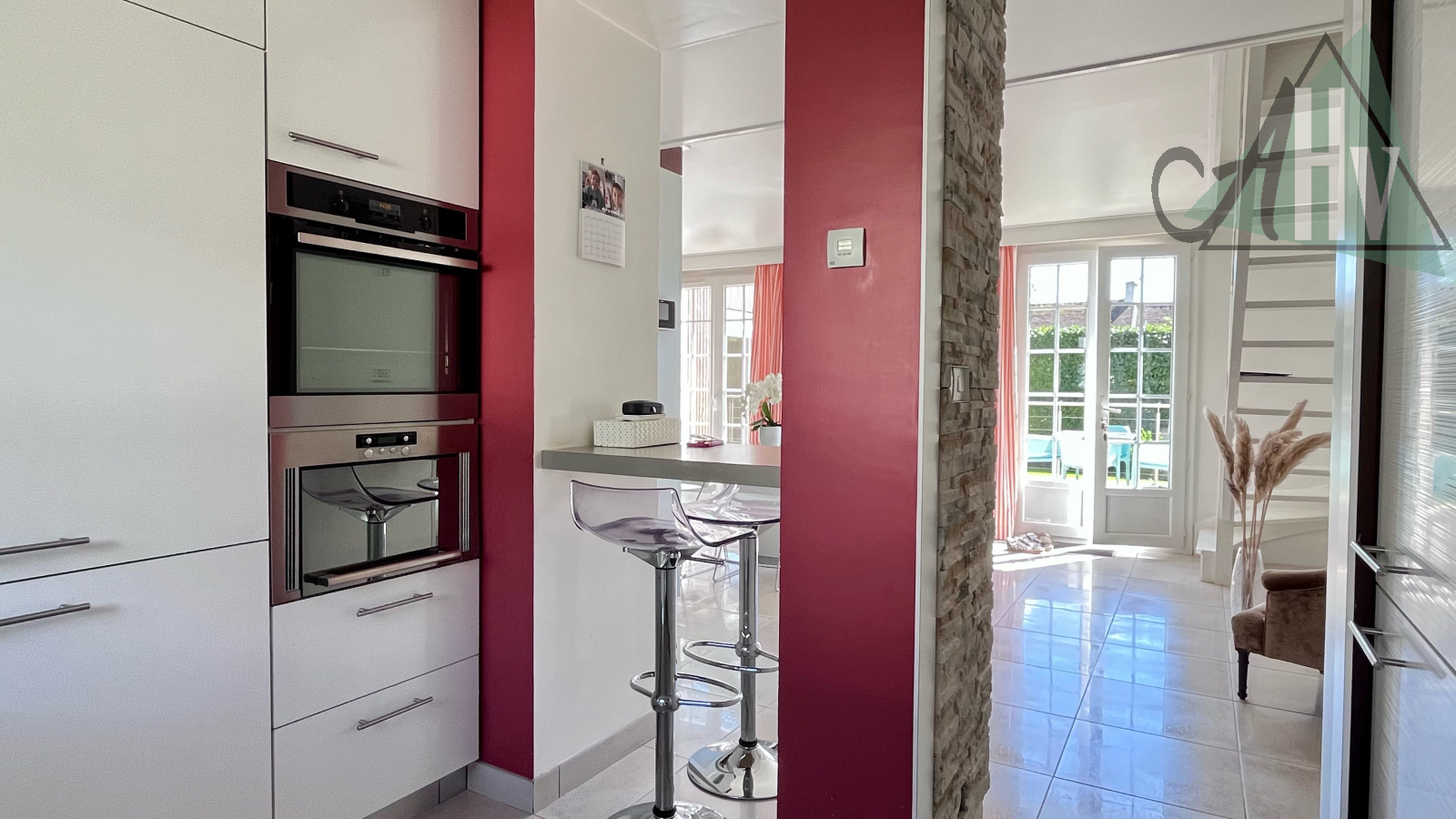 aménagée et équipée (four, four micro ondes, plaque, hotte)