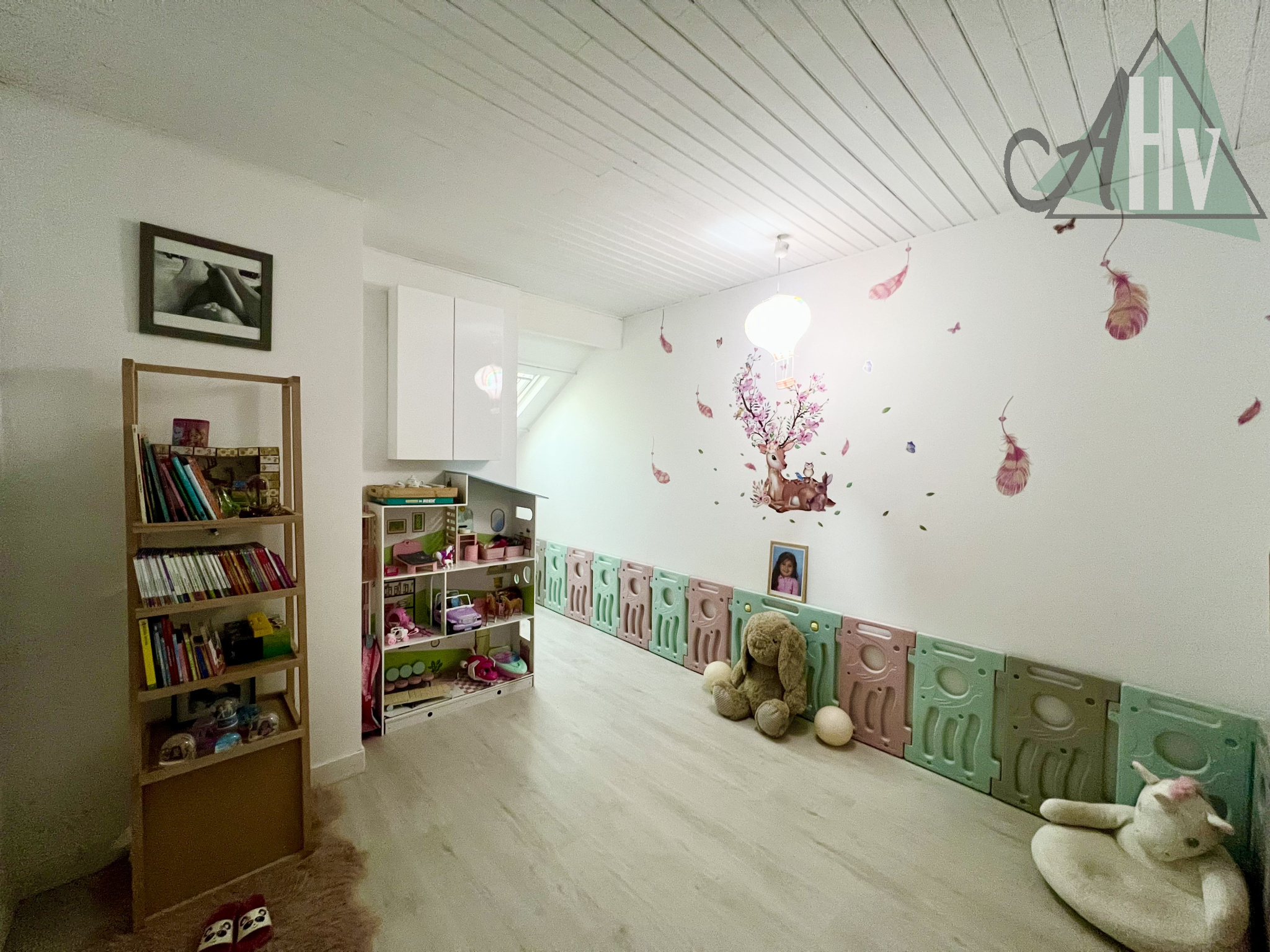 Le premier étage vous invite à découvrir deux chambres, un bureau (pouvant servir de chambre) ainsi qu’une salle de bains avec WC.