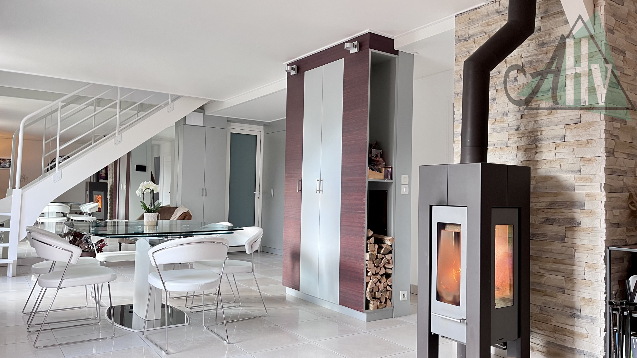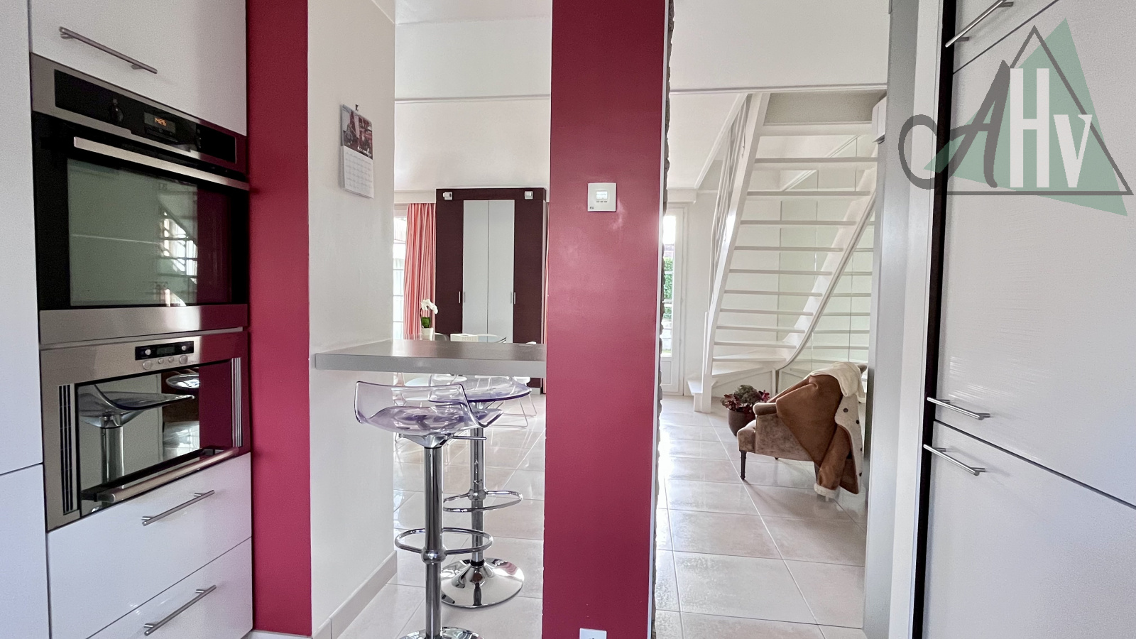 aménagée et équipée (four, four micro ondes, plaque, hotte)