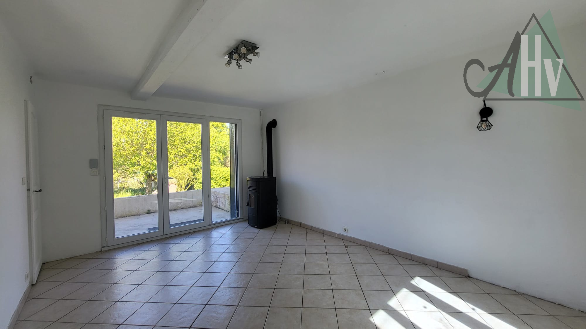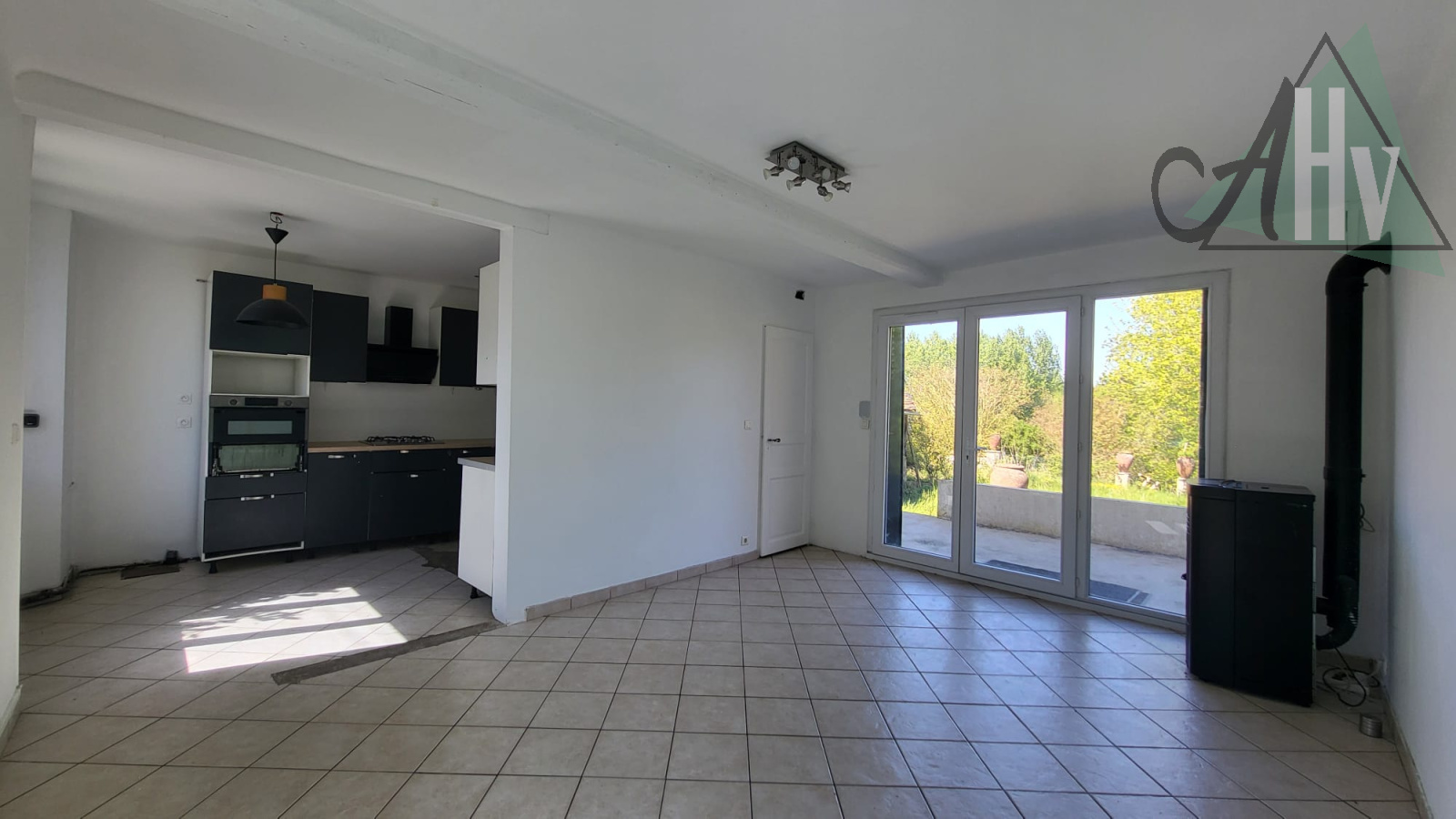 Au rez-de-chaussée elle se compose d'une cuisine ouverte sur un salon lumineux avec un poêle à granulés donnant sur une agréable terrasse, un couloir, un WC, une chambre, une pièce et une salle de bains