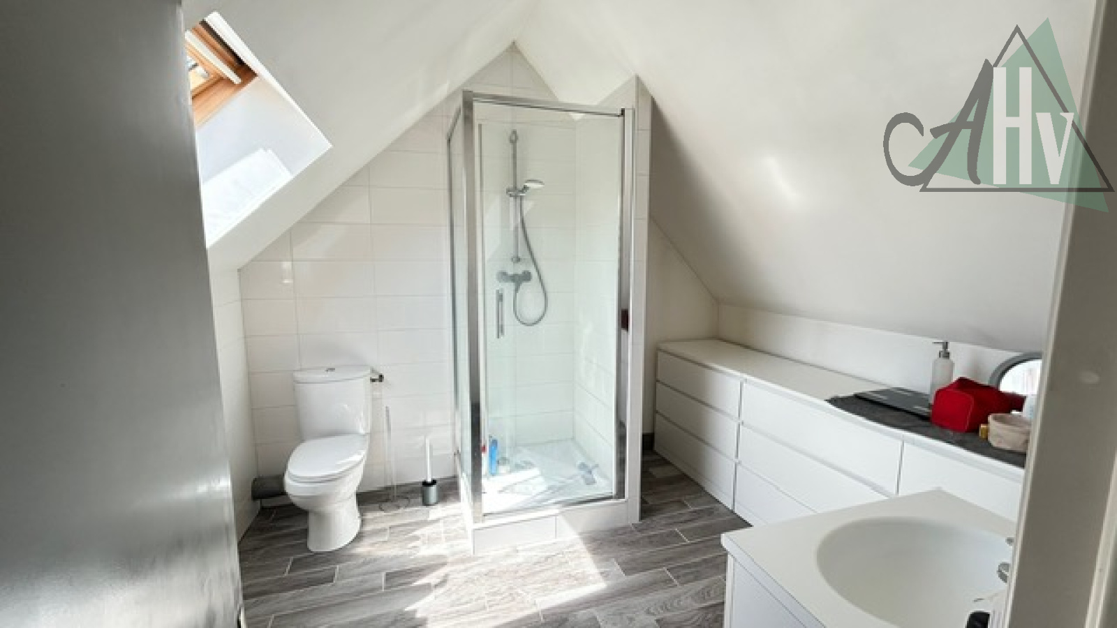 Au premier étage : Un palier, une salle d'eau, deux chambres et une suite parentale avec salle d'eau et WC.