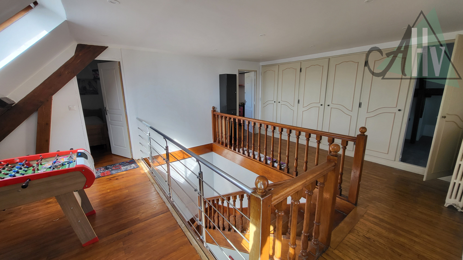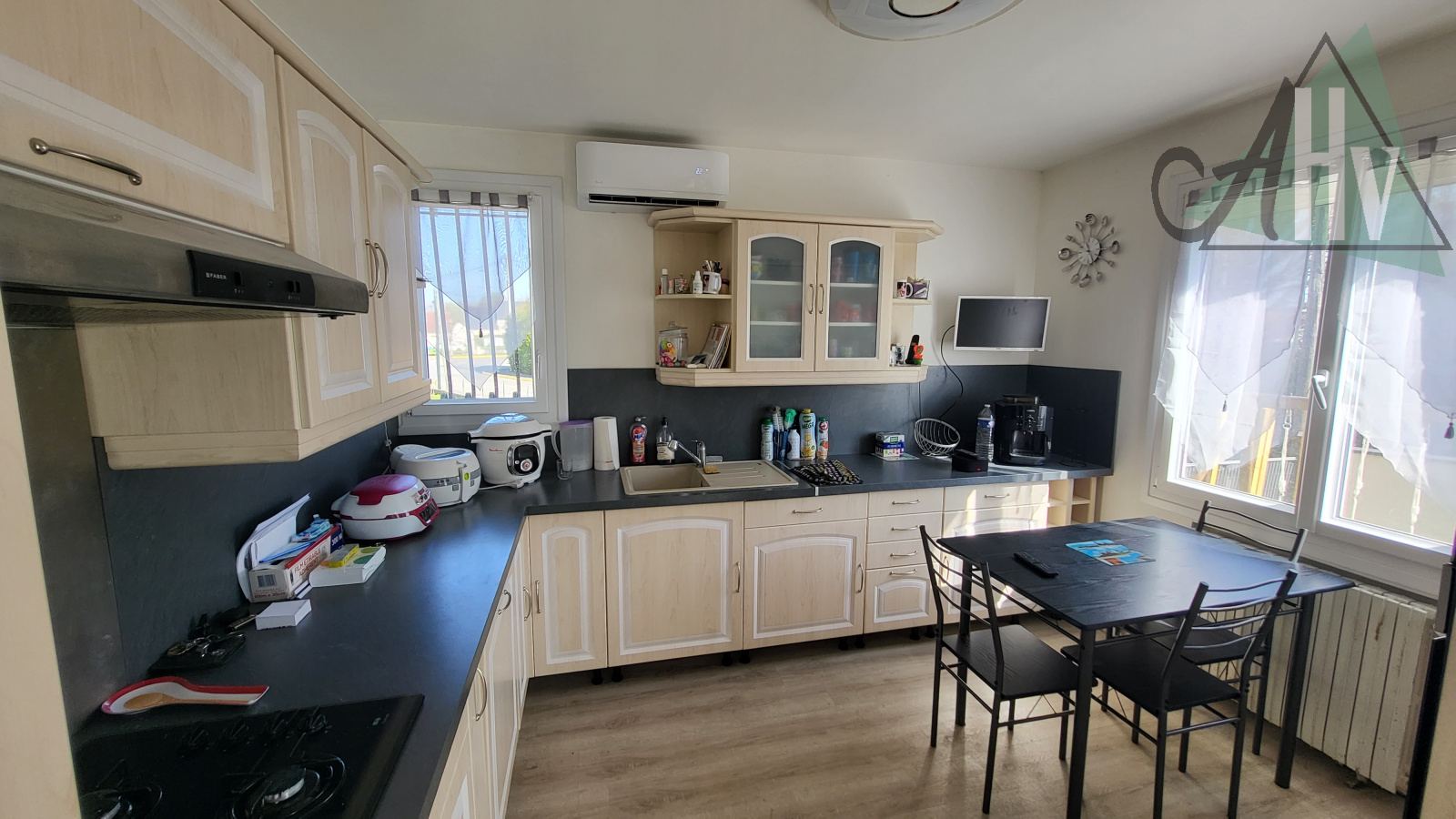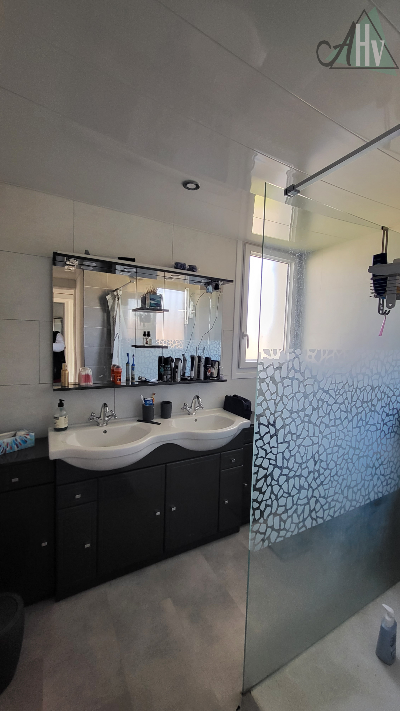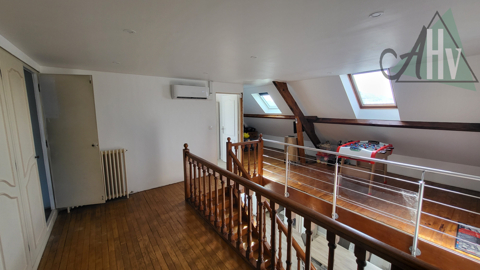 77 - A 5mn à pied des commerces et des écoles, sur un terrain clos d'environ 545 m², sur rue très calme, très belle Maison sur sous sol de 150 m2 à voir absolument comprenant au rez-de-chaussée : entrée donnant sur cuisine aménagée et équipée, très beau salon-séjour de 40 m² environ, chambre, salle d'eau, WC. A l'étage : très vaste palier, deux chambres, pièce d'eau avec WC, bureau. Sous-sol compartimenté : pièce, buanderie, chaufferie, cave, garage. Double vitrage, volets roulants électriques solaires, ballon thermodynamique, alarme, visiophone, portail électrique, chauffage gaz de ville et climatisation révérsible air-air, fibre optique, tout à l'égout.