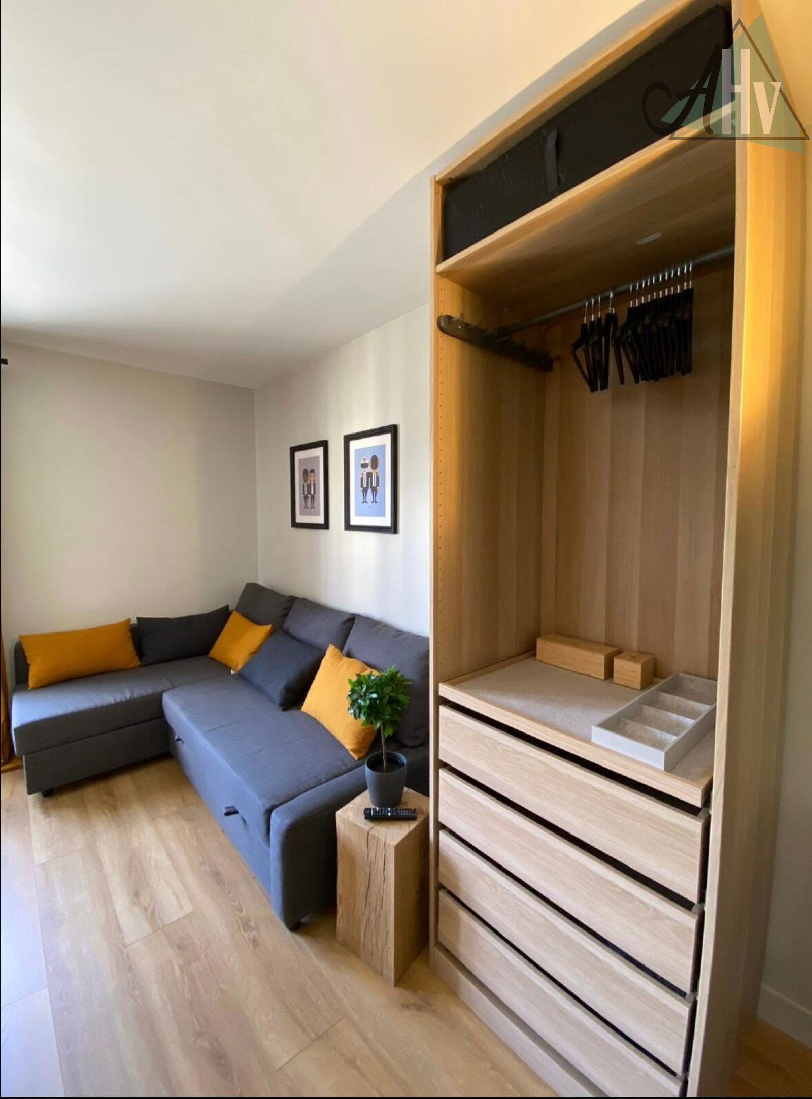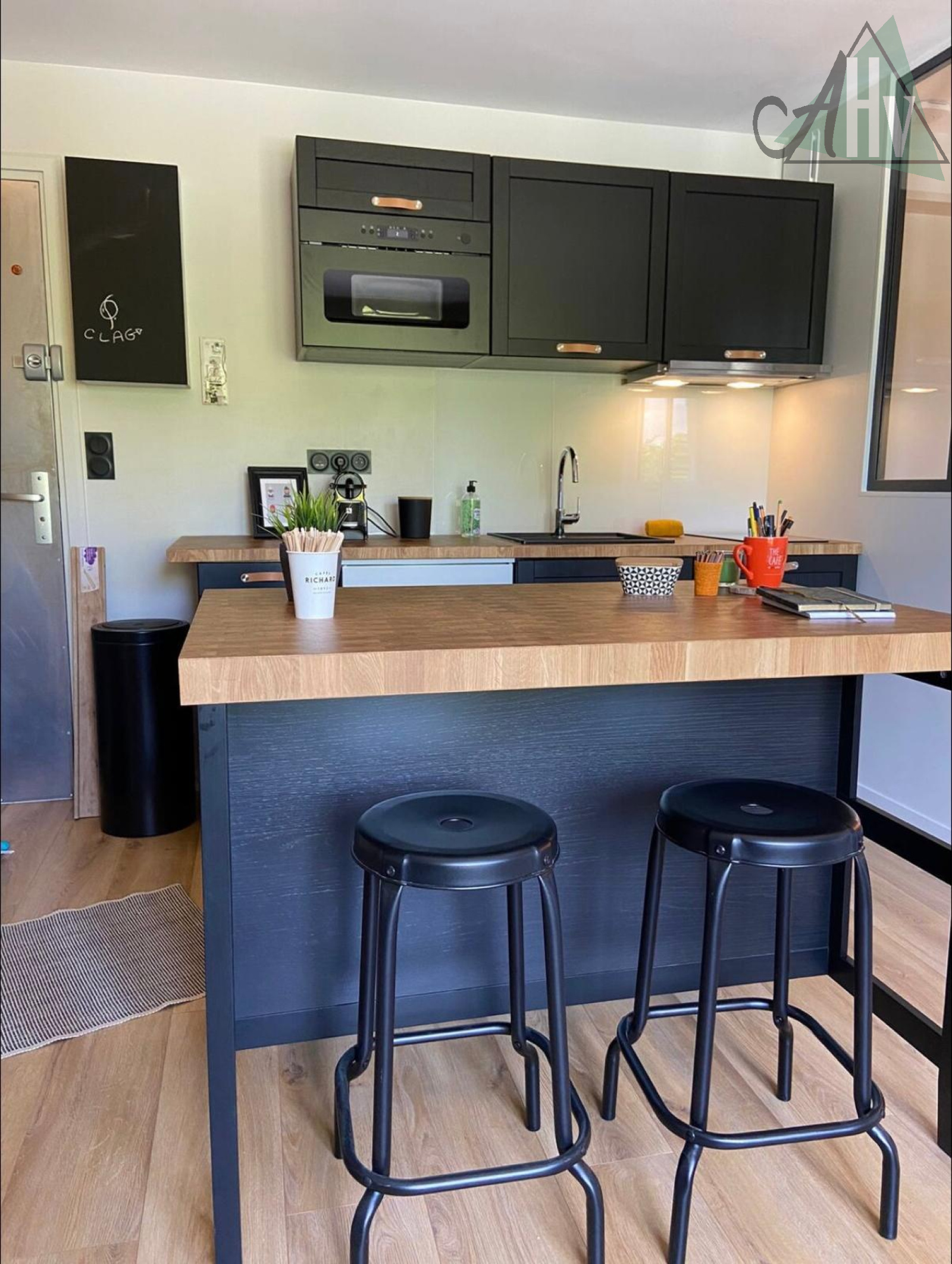 Une pièce pricipale avec cuisine ouverte aménagée, salle de bains avec WC