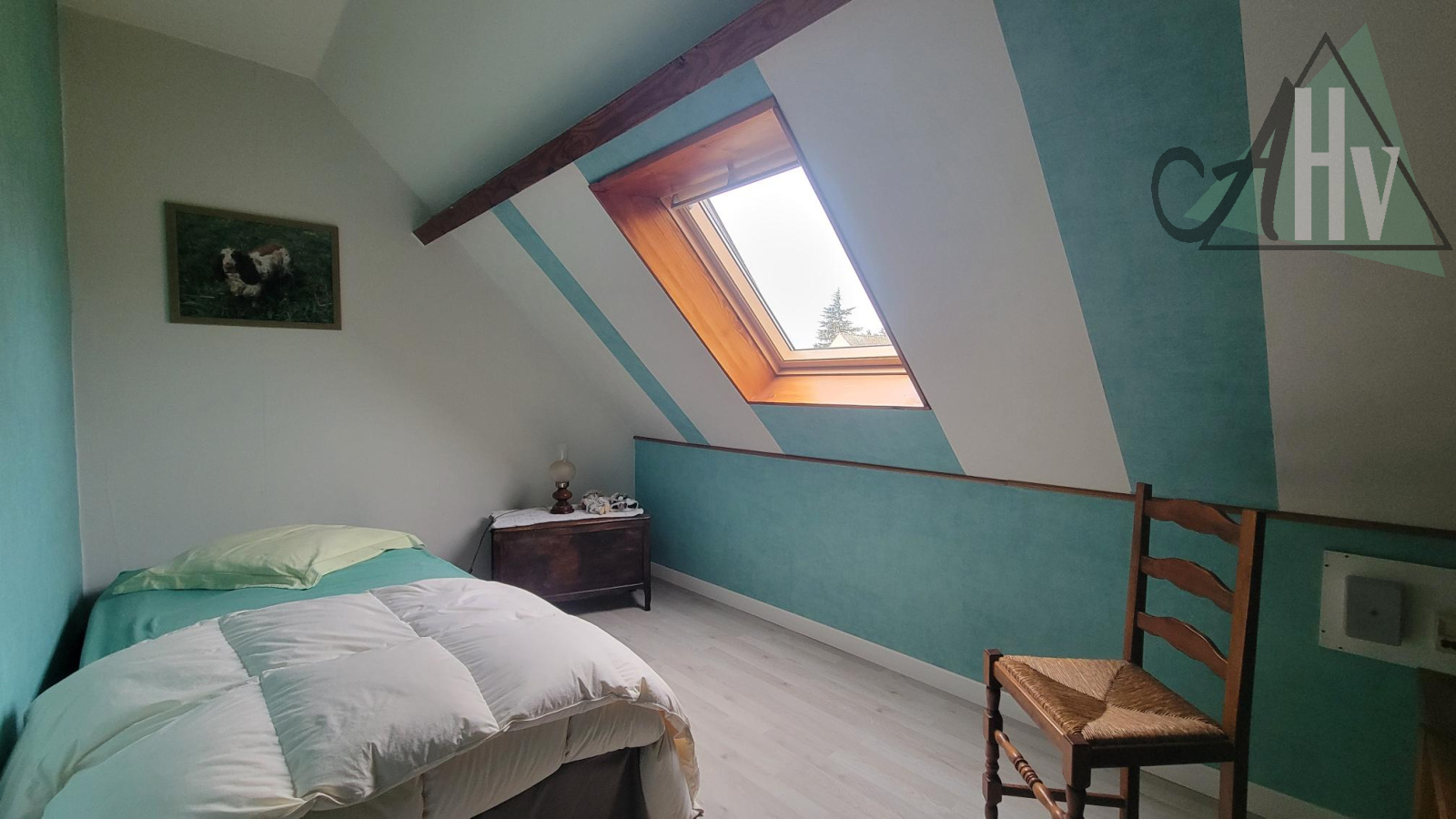Au rez-de-chaussée : entrée, salon-salle à manger avec cheminée insert, cuisine aménagée et équipée, chambre avec balcon, wc,