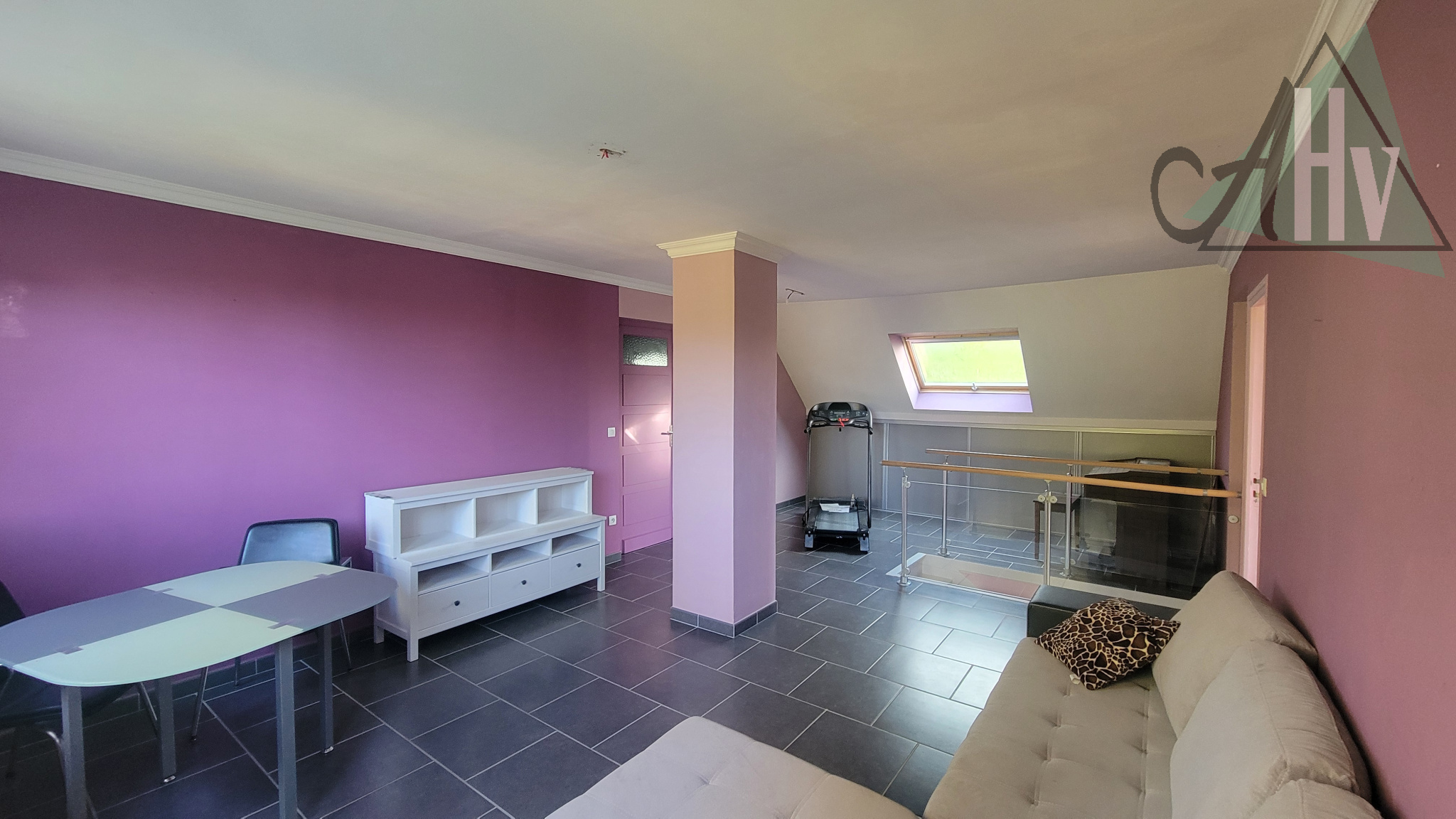 Elle comprend au rez-de-chaussée une entrée desservant une belle pièce de vie (salon/salle à manger) avec cheminée, une cuisine aménagée et équipée avec accès à une terrasse, deux chambres, une salle d'eau avec WC, et un WC indépendant. A l'étage vaste pièce palière, et suite parentale avec douche, lavabo et WC. Grenier aménageable permettant la création d'un espace de vie supplémentaire. Garage attenant.