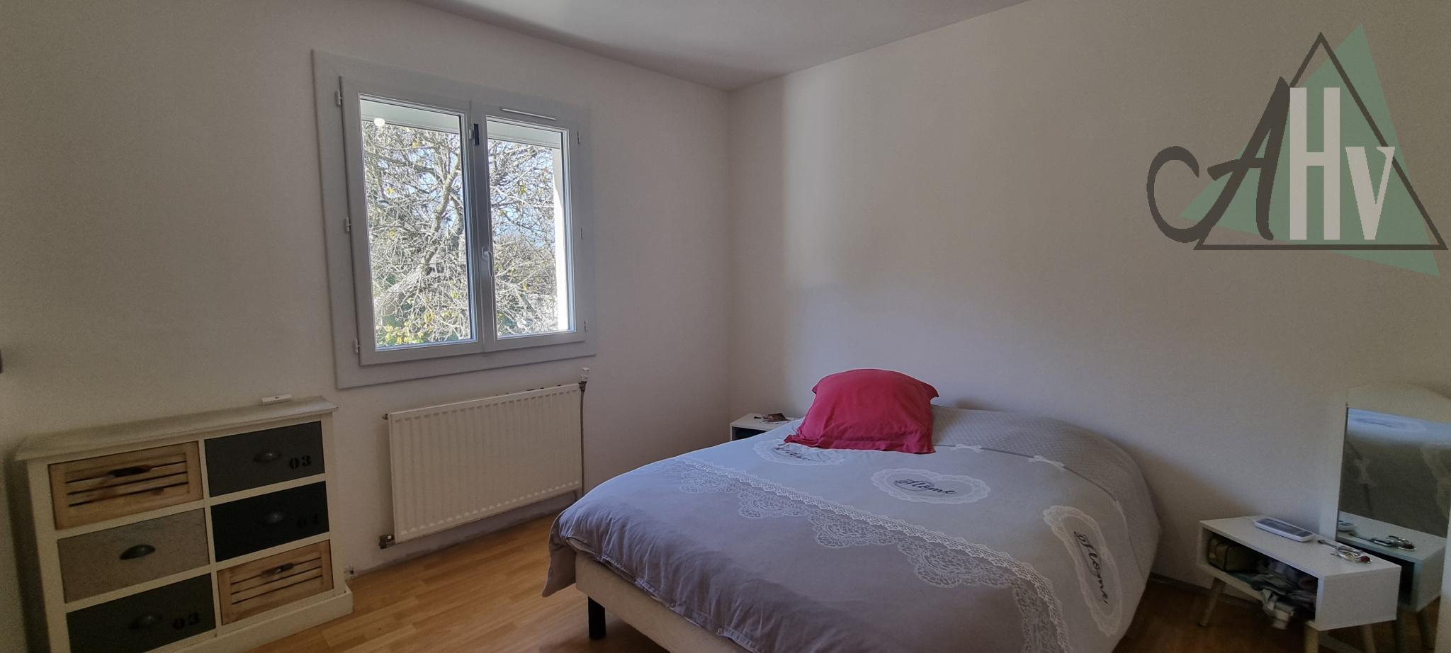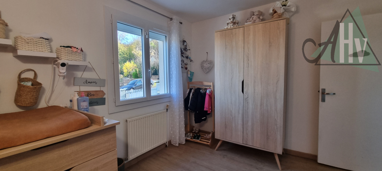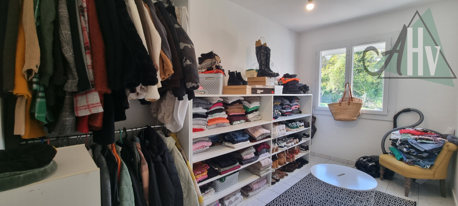La partie de plain-pied se compose comme suit : salon-séjour lumineux ouvert sur la cuisine, offrant un espace convivial donnant directement sur la terrasse et le jardin à l’arrière, un couloir dessert un WC, une salle de bain, trois chambres et un dressing.