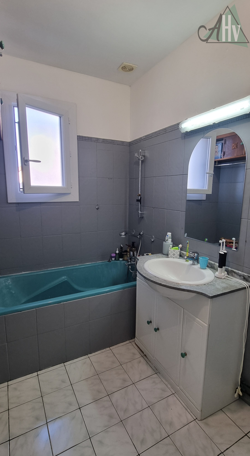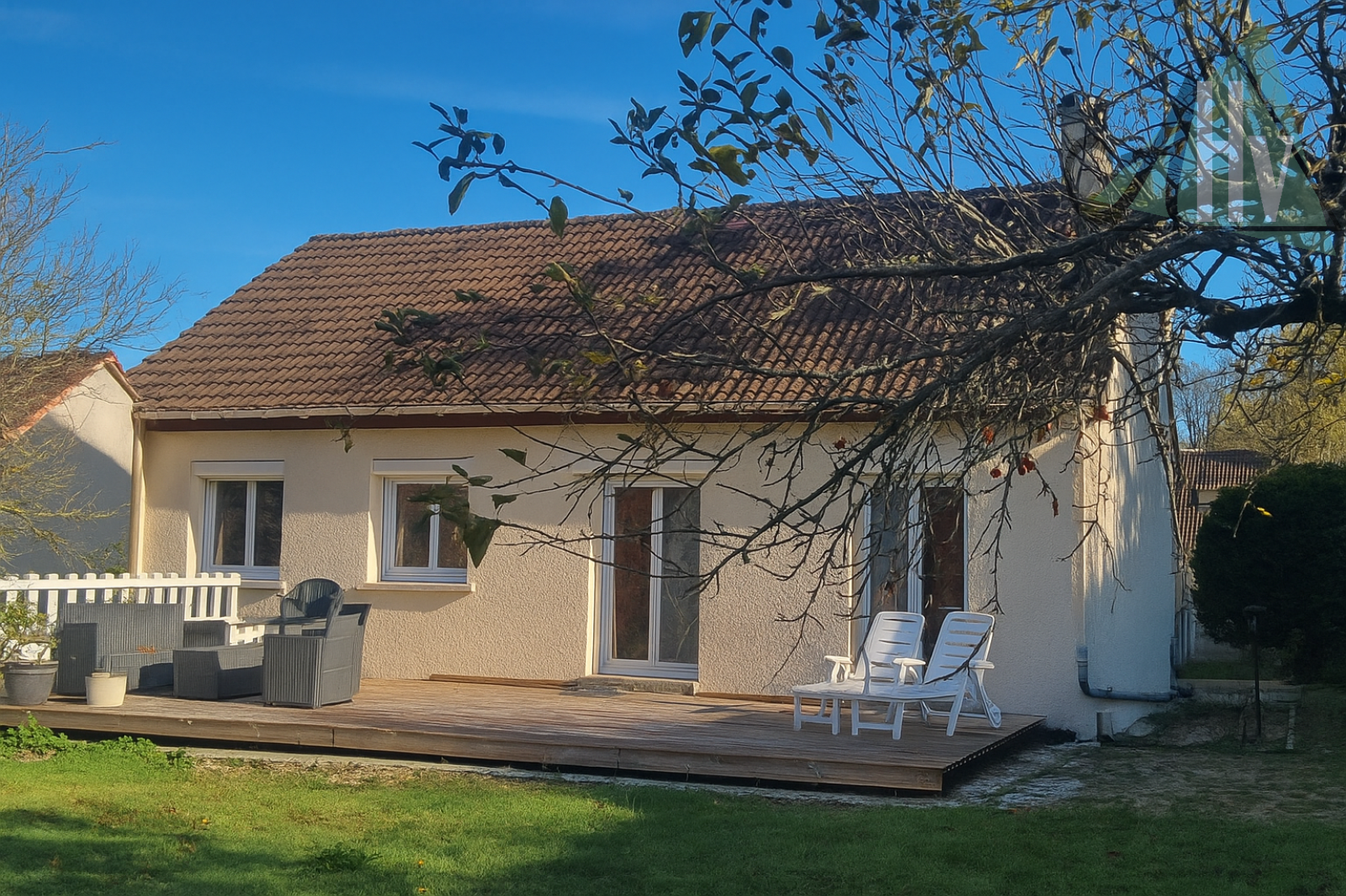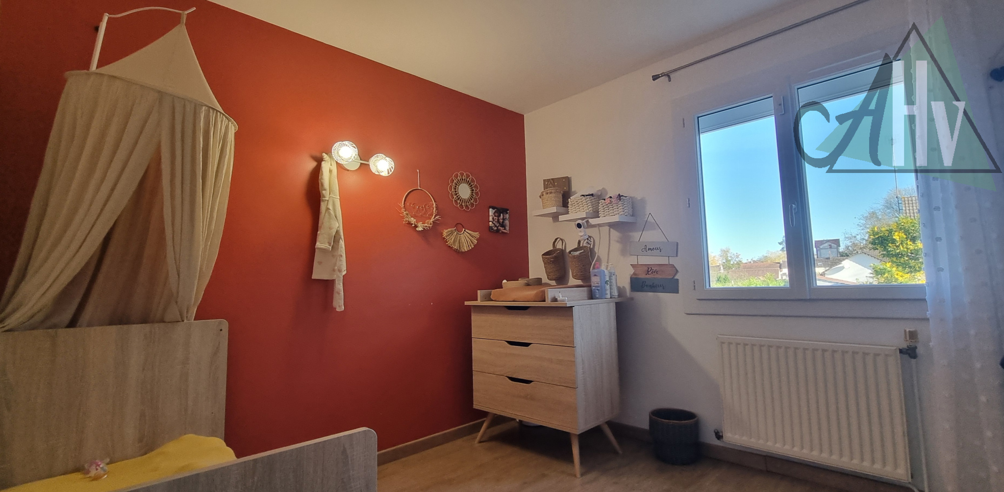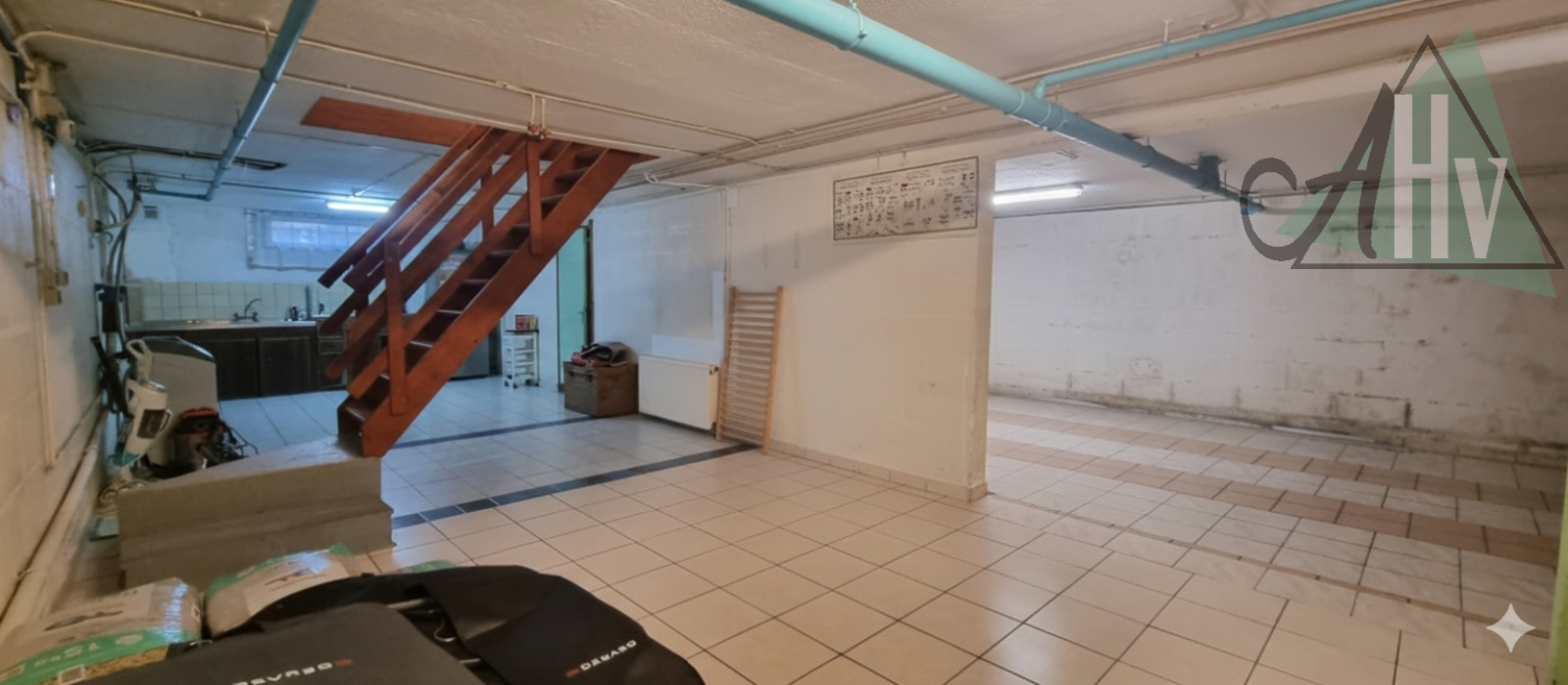 La partie de plain-pied se compose comme suit : salon-séjour lumineux ouvert sur la cuisine, offrant un espace convivial donnant directement sur la terrasse et le jardin à l’arrière, un couloir dessert un WC, une salle de bain, trois chambres et un dressing.