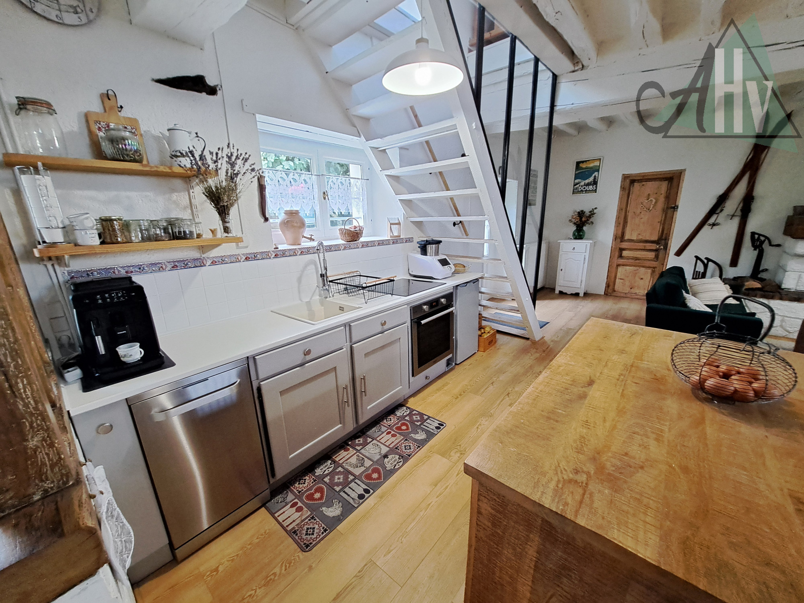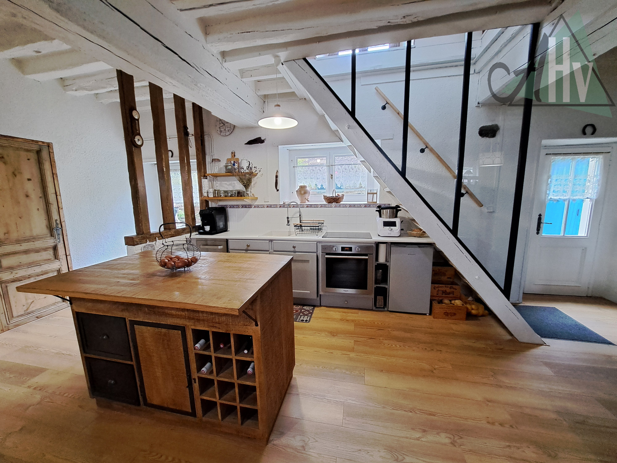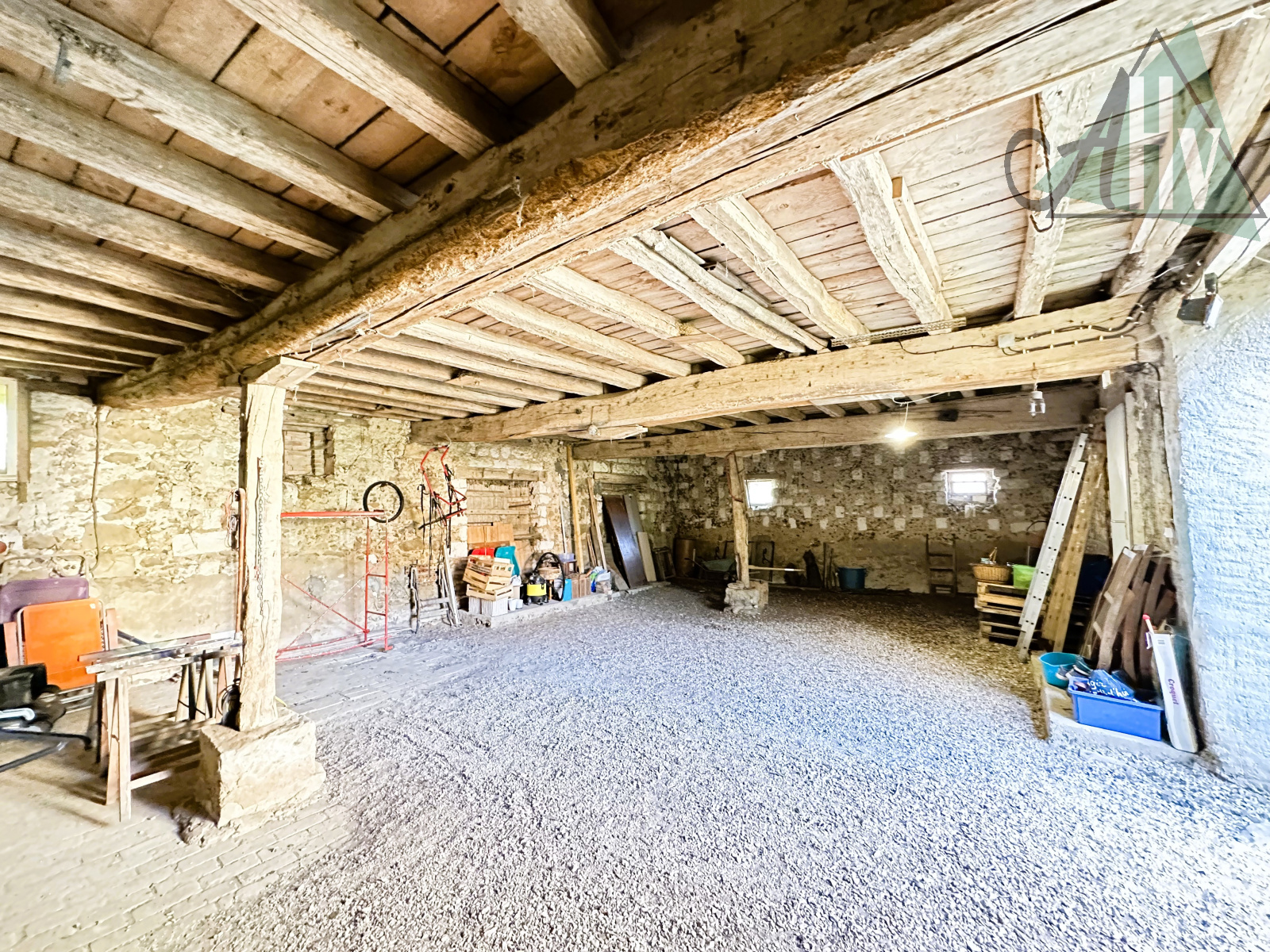 Attenante à la maison, avec accès depuis le salon, une grange de 108 m² et son grenier de même superficie ainsi qu’une belle cave voûtée complètent cette propriété.