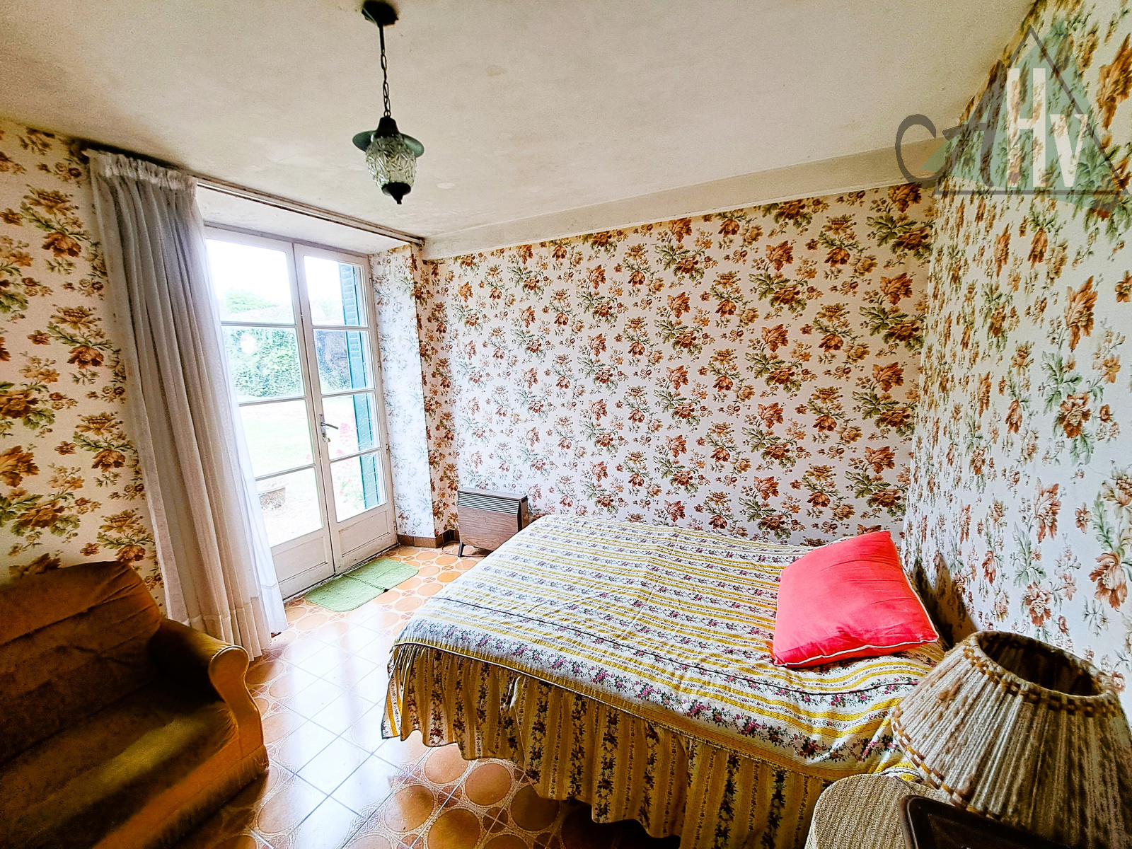 au RDC : entrée sur cuisine de 23 m², alcôve / cellier de 8 m², salon de 21 m², deux chambres (17,4 et 11,4 m²), salle de bains, wc séparés ; à l'étage : grand grenier aménageable d'environ 77 m². Cave voutée.