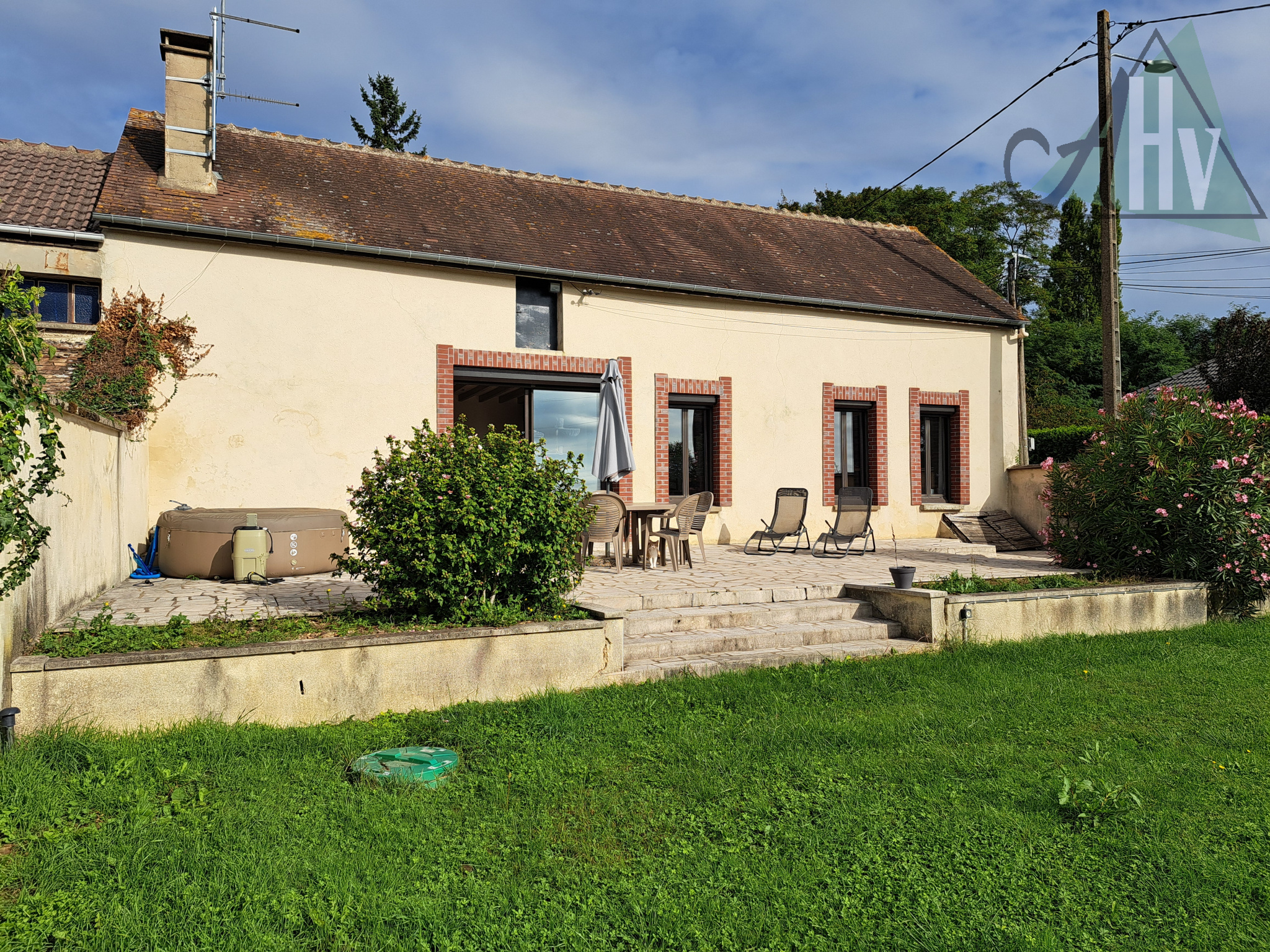 Dans un hameau de Pont sur Yonne, à 5 mn de toutes les commodités, cette jolie longère de 148 m², de plain pied, comprend :