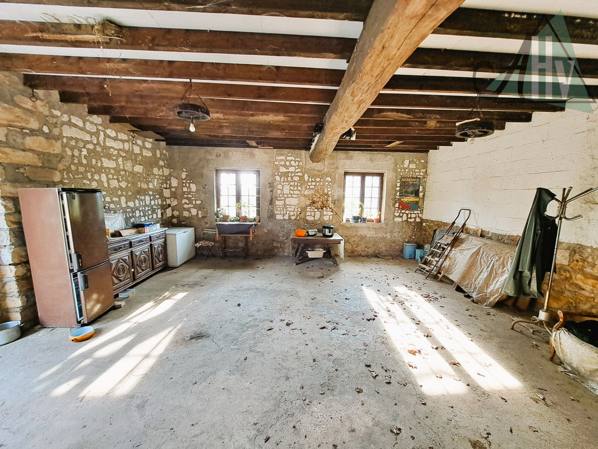 Cette belle longère à rénover, pleine de charme, propose : au RDC : entrée, cuisine aménagée 20 m², salle à manger de 21 m² (avec poêle à bois récent) ouverte sur salon de 11 m², chambre de 11,5 m², deuxième salon de 13 m², salle d'eau, wc séparés, dégagement avec placards… et accès à une belle grange avec une grande pièce de 50 m² (et son étage aménageable).