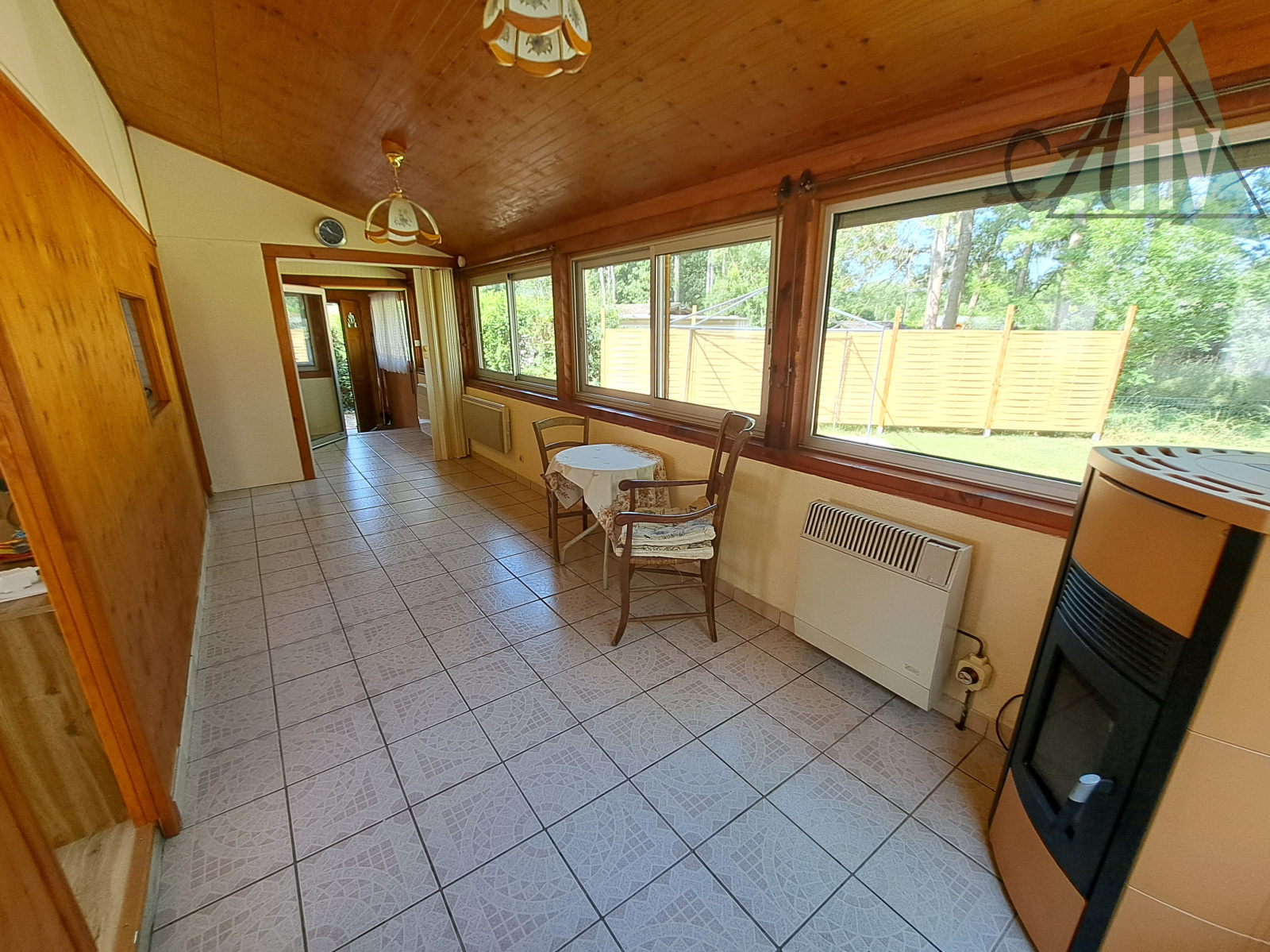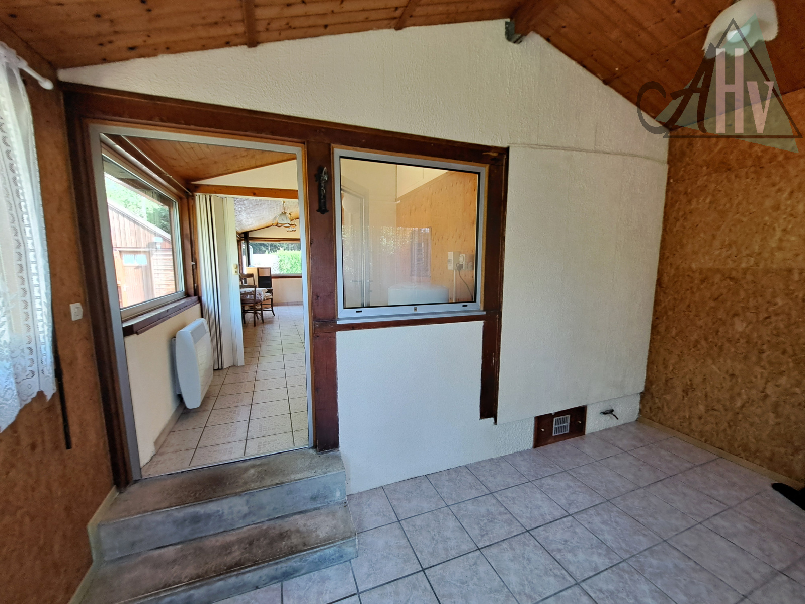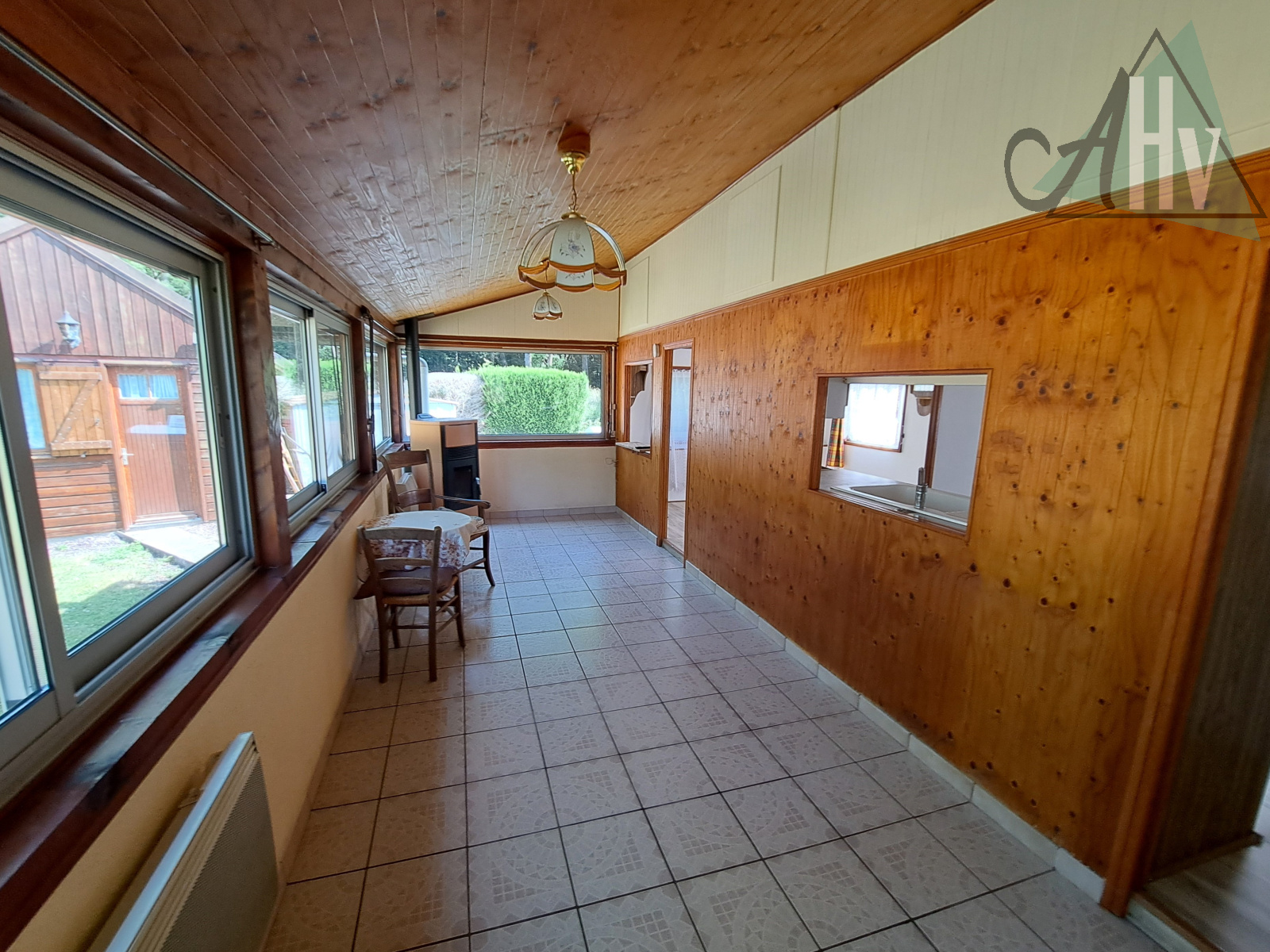Le chalet comprend : grande entrée de 10,5 ㎡, cuisine aménagée équipée ouverte sur salle à manger de 17 ㎡ (possible de cloisonner pour créer une 2ème chambre), salon de 14,5 ㎡ avec poêle à granulés récent, chambre de 5 ㎡, salle d'eau avec wc, cellier de 4,6 ㎡.