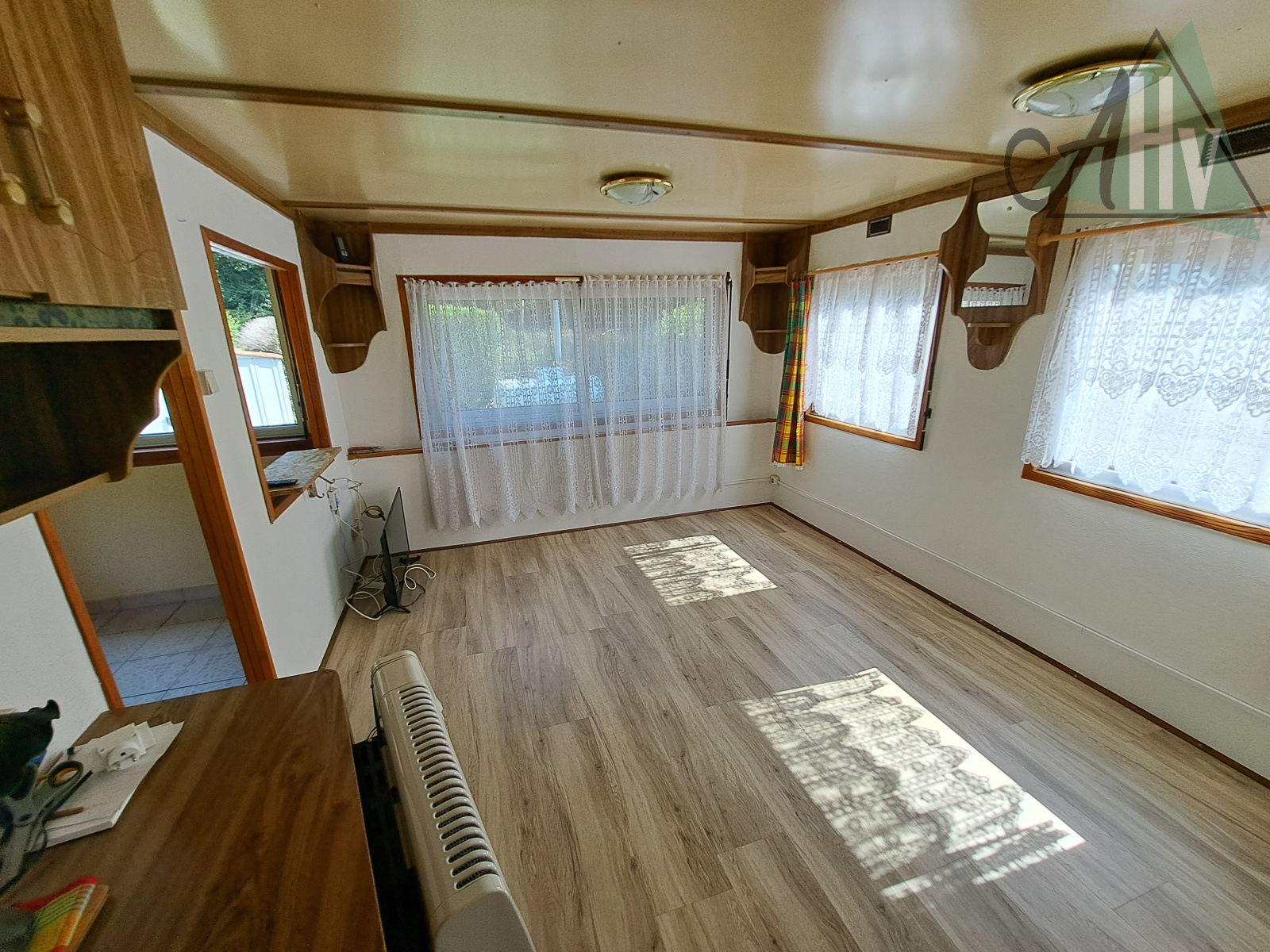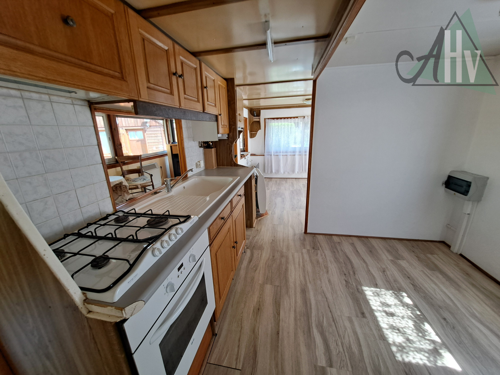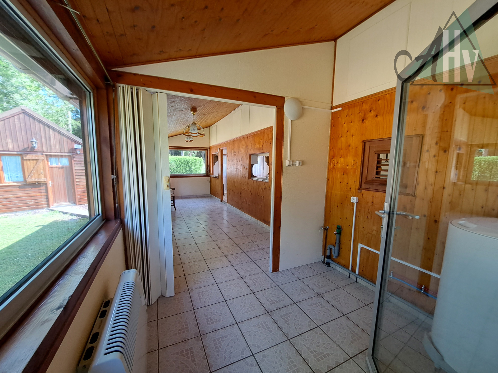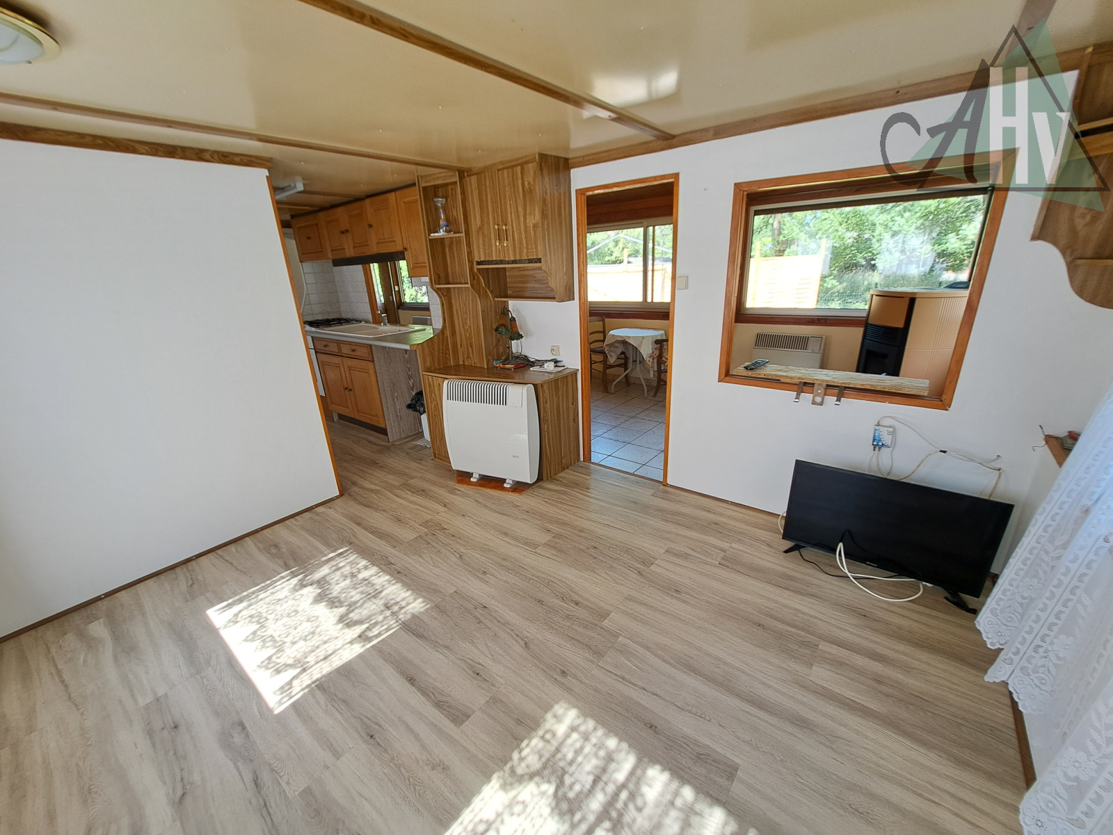 Le chalet comprend : grande entrée de 10,5 ㎡, cuisine aménagée équipée ouverte sur salle à manger de 17 ㎡ (possible de cloisonner pour créer une 2ème chambre), salon de 14,5 ㎡ avec poêle à granulés récent, chambre de 5 ㎡, salle d'eau avec wc, cellier de 4,6 ㎡.